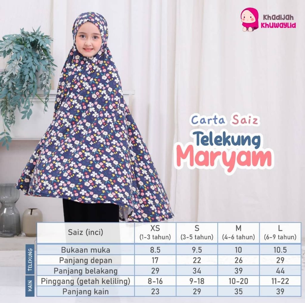 TELEKUNG MARYAM diperbuat daripada cotton knit yang berkualiti tinggi dan kain daripada korean mosscrepe. Rekabentuk muka dan dagu yang fleksibel sesuai untuk semua bentuk muka.
